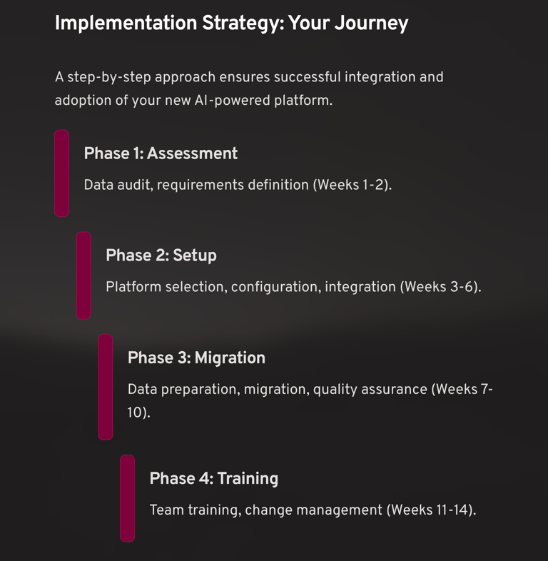 Iterative Implementation and Continuous Optimization Rather than attempting perfect implementation from day one, successful organizations plan for iterative improvement, starting with core functionality and gradually adding advanced features as users become comfortable and processes mature. This approach reduces risk while enabling faster time to value.