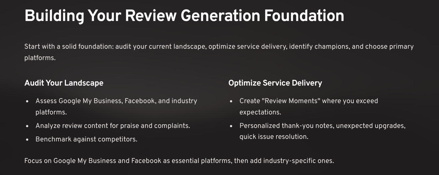 Success in review generation starts with getting the fundamentals right. You can't build a skyscraper on a weak foundation, and you can't generate consistent five-star reviews without excellent customer experiences.